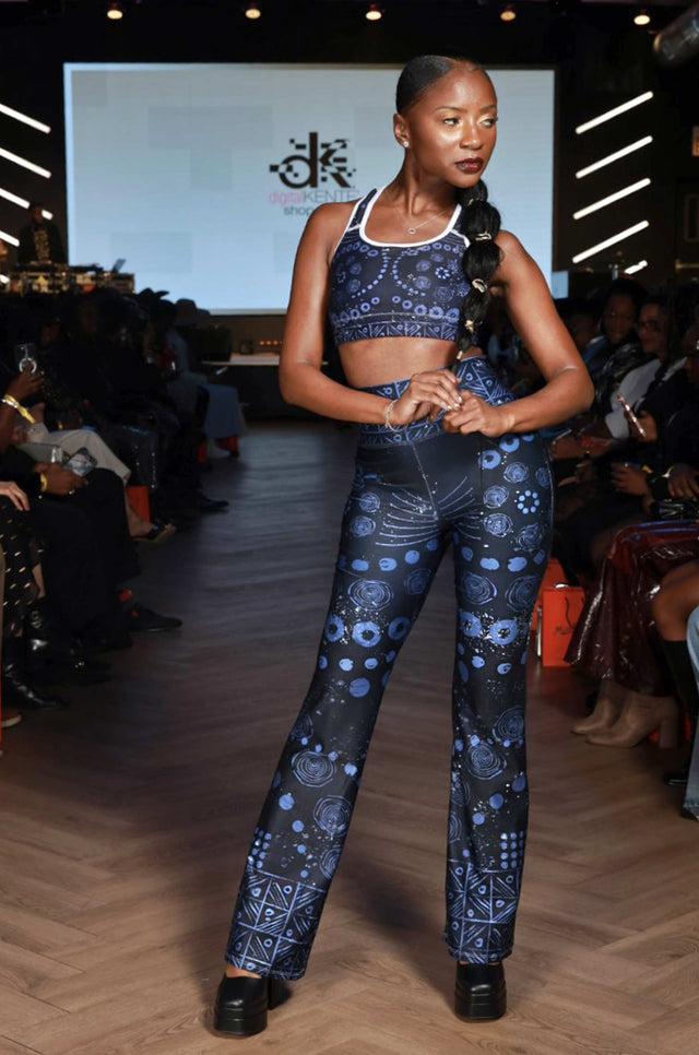 The digitalKENTE® digitalADIRE print collection pays homage to the rich heritage of àdìre (a traditional Yoruba tie-and-dye printing method using cassava paste illustrations working against indigo dye), S.E. Asian batik (a traditional Indonesian wax-resist printing method using indigo dye), and the history of enslaved Africans' back-breaking work to harvest indigo in South Carolina and New Orleans.